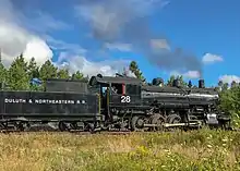 Duluth & Northeastern 28 (also known as Duluth, Missabe & Iron Range 332) is a preserved 2-8-0 "Consolidation" type steam locomotive built in 1906 by the Pittsburgh Works of American Locomotive Company (ALCO) in Pittsburgh, Pennsylvania.[1] It was restored to operating condition by the Lake Superior Railroad Museum from 2011-2017 and now operates in excursion service on the North Shore Scenic Railroad.