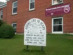 DMNH was named after a local well-known doctor, Dr. Duncan MacMillan. The building that was used as DMNH from 1983–2010 was originally built in 1948, and used as Eastern Shore Memorial Hospital. It was converted into a Nursing Home in 1983 after a new wing was built and made into the Eastern Shore Memorial Hospital.[1]