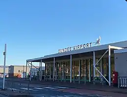 The grass runway was replaced by a 1,100 m (3,609 ft) long tarmac runway in the 1970s, and extended to the current length of 1,400 m (4,593 ft) in the 1990s. The airport was granted "customs airport" status on 16 April 1982[7] and runway edge lights were added in 1983.[8] The current terminal was opened in 1997 by the then EU transport commissioner Neil Kinnock.