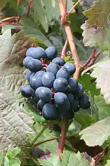 Dunkelfelder is a dark-skinned variety of grape used for red wine. It was created by German viticulturalist Gustav Adolf Froelich (1847-1912).[1] He probably crossed Färbertraube (a teinturier) with Blauer Portugieser.[2] The variety, initially called Froelich V 4-4, did not receive any attention for several decades until work was continued on it at Geisenheim grape breeding institute in the 1930s. It was named Dunkelfelder (dunkel = dark) by ampelographer Helmut Becker, due to its unclear parentage and its dark colour. Dunkelfelder received varietal protection and was released for general cultivation in 1980.[1]