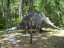 A miniature train carried visitors past life-sized statues of so-called "prehistoric monsters"—dinosaurs fashioned by M.D. "Manny" Lawrence out of chicken wire and concrete. Among the five statues still existing are a triceratops, a stegosaurus, a tyrannosaurus rex, a dimetrodon and a giant ground sloth added later. According to a 1991 article in the Orlando Sentinel, a Seminole family lived on the grounds for two years in a chickee, or outdoor shelter with a thatched roof and open sides.[17] In 1963, Lloyd landscaped the site, retaining the dinosaurs, and donated it to the county.[2]