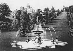 The cascade has changed little since it was built in the 19th century.[10] It operates between the main lake and the water garden adjacent to the fountain. The deterioration of the Cascade was one of the main motivators behind seeking restoration of the park and the repairs were designed to ensure the operation of the cascade throughout the year.[11]