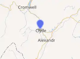 Clyde, formerly Dunstan, is a small town in Central Otago, New Zealand with a population of 1,250 in June 2021.[2] It is located on the Clutha River, between Cromwell and Alexandra.