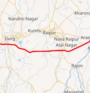 ![]() Durg–Raipur–Arang Expressway in red | |