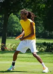 Dustin Brown (born 8 December 1984)[1] is a German professional tennis player. He rose to fame after beating Rafael Nadal in the 2014 Halle Open and Wimbledon 2015, and is known for his technique, speed, and entertaining playing style, often entertaining the crowd with trick shots. He is also known as "Dreddy" due to his distinctive long dreadlocked hair.