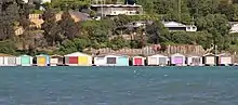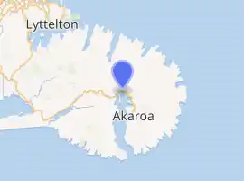 The name of the town and bay comes from the surname of two brothers Jules-Augustin and Louis-Benjamin Duvauchelle, who held land there from the Nanto-Bordelaise Company, at the time of the French settlement at Akaroa in the 1840s. In the following decade, land alongside Duvauchelle Bay was leased from the Canterbury Association by British settlers, including William Augustus Gordon, who was the brother of Charles George Gordon, the famous soldier and colonial administrator, known as "Gordon of Khartoum" after his death. The first freeholds were bought in 1857; economic activity was focused on timber extraction and sawing, mostly totara trees. Domestic pigs were grazed in the forest, who mingled with the feral pigs that were already present. As the tree cover was cleared, it was replaced with pasture.[4] The first settler at the Head of the Bay, the location of the present town, was a Frenchman called Libeau, who arrived in 1841. Timber exploitation was also the main activity, as well as boat building. The sawn timber was all carried out of the bay by locally built vessels. A public house and a shop were built in the 1850s. A small building that served as both church and school was built by local people on a half-acre plot of land donated by Lord Lyttelton. The first permanent roads began to be constructed in the 1860s and 1879 saw the arrival of the County Council offices and the Post Office.[5]