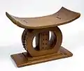 Often made of wood, the dwa is more or less decorated according to the status of its possessor,[1] it has great institutional and symbolic importance among the Akan.[2] These stools are rectangular in shape and have five supporting pillars (annan).[3] The royal seat or ahennwa is considered the "soul of the nation", once enthroned the king (ahene) becomes as sacred as the seat.[4][5]