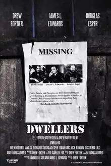 Dwellers is an American found footage horror film written by, directed by, and starring Drew Fortier.[1] The plot of the film follows a documentary crew who eventually go missing while uncovering the truths behind the disappearances within a homeless community.[2][3] The film stars Drew Fortier, James L. Edwards, and Douglas Esper as themselves.[4][5]