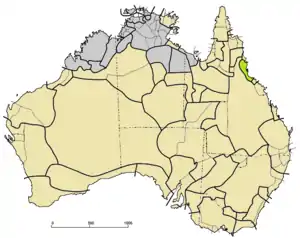 ![]() Dyirbalic languages (green) among other Pama–Nyungan (tan) | |
