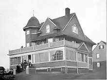 In 1895, Johnson, very much aware of the successful Bensonhurst-by-the-Sea, built three homes. His home was on the southwest corner of 11th Avenue and 82nd Street (across the Avenue from the home of his mother), Albert Edward Parfitt's home was on 82nd Street next to Johnson's, and the last, closest to Tenth Avenue, was the home of Arthur S. Tuttle who was Assistant Engineer of The Water Supply of The City Works Department of The City of Brooklyn. Parfitt was the architect of these three homes. Johnson's house burned down before 1900, Parfitt's was demolished by a developer in 1928 and replaced with seven, run-of-the-mill, fully detached, single-family homes, and Tuttle's house was remodeled over 10 years ago and clad in bright-white and sky-blue brick.[10]