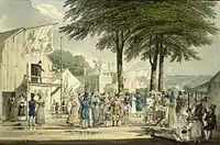 Open to the general public once again, Dyrehavsbakken began to flourish. The entertainers, hawkers, and innkeepers returned to the area, and Bakken's growing reputation throughout Europe attracted other entertainers and artists, including Pjerrot, the clown who still is a fixture at the park today.[1] Bakken continued to grow even throughout the Napoleonic Wars. Its popularity was later aided by easier accessibility due to the development of steamships (1820) and railroads (1864), as well as good publicity from poets and authors.[1]