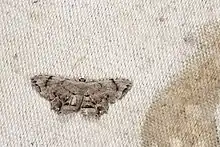 The wings are dark grey with black marks. The fasciae in the forewing are angular, whereas submarginal mark is narrow. In the hindwings, a band interior to the postmedial, dorsal to its angle is marked with black. A pale region is exterior to it.[4]