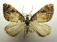 Sources disagree on the authority for this species. While some sources claim the species was described by Staudinger in 1889,[1] others state it was described by Staudinger in 1882,[2] Dahl in 1900[3] or Blocker in 1908.[4]
