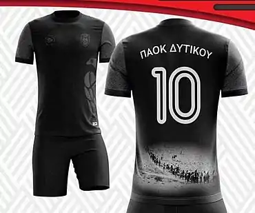 As of August 2017 this is the official jersey of PAOK Dytikou, following the standard concept and colours of PAOK Thessaloniki.[14]