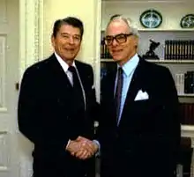 ![]() Wendt (right) shaking hands with Ronald Reagan in 1988 | |