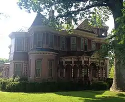 E. L. Evans House is a historic home located at South Boston, Halifax County, Virginia. It was built in 1892, and is a large two-story, five bay, balloon-frame High Victorian style dwelling. The front facade features a projecting center gable holding cutaway bays on both the first and second stories, a three-story tower on the northeast corner, and a curved, projecting gabled bay. Also on the property is the contributing brick foundation for the former ice house.[3]
