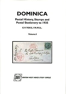 He completed the work of Philip Saunders, the founder of the BWISC, and others in a survey of the postal history, stamps, and postal stationery of Dominica to 1935 that was published in 1994, the first book devoted to the philately of the island since Bertram W. H. Poole's monograph of c. 1909.[11][12]