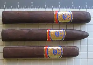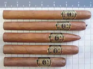 A medium to full-bodied smoke, the filler and binder are Nicaraguan tobacco and the wrapper is Ecuadoran-grown Connecticut-seed tobacco. The band has gold printing on a black background. The line was discontinued in 2010.