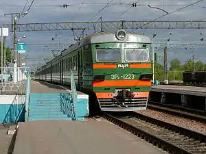 ER2 electric trainset is a DC electric multiple unit which was in production by the Railroad Machinery Plants of Riga (in consortium with the Electrical Machinery Plants of Riga and the Railroad Machinery Plants of Kalinin) from June 1962 to mid-1984. It was essentially an improvement of the ER1 design, featuring footboards for low platforms, and aprons for high platforms, as well as improved electrical equipment and minor changes to the bodywork (specifically, the engineer's cab, side walls, headstocks, and door mountings). Since the mid-1960s, the ER2 has been the most widely used type of suburban train in the Soviet Union and its successor states.