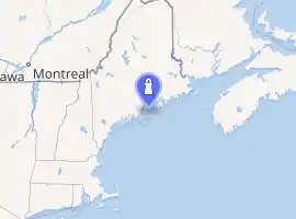 Eagle Island Light is a lighthouse on Eagle Island in Penobscot Bay, in south central Maine.[1][2][3] The tower was first lit in 1838 but had to be torn down because of major physical defects. It was rebuilt in 1858 and operated by several families over the next century. In 1959 the light was automated, and five years later, over vehement local protests, the keeper's house was torn down and the bell was removed. The crew that removed the bell lost control of it, and it fell into the Bay. A Lobsterman salvaged it some years later and it is on exhibit on Great Spruce Head Island.