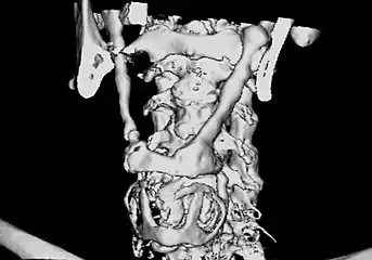 3D reconstructed CT scan showing elongated styloid process (right side)