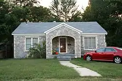 The Earl and Mildred Ward House is a historic house at 1157 Mitchell Street in Conway, Arkansas. It is a single story wood-frame structure, with a stone veneer exterior, cream-colored brick trim, and a gabled roof. A gabled porch projects from the center of the modest house, with an arched opening lined with bricks. The house was built in 1949 by African-American mason Silas Owens, Sr., and is the only house he is known to have done in granite instead of his preferred sandstone.[2]