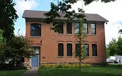 The Earlham Public School is a historic building located in Earlham, Iowa, United States. The town's name was chosen by the Quakers, who were the largest group of settlers in the community.[2] They named it for Earlham College in Richmond, Indiana because they intended to establish a similar institution in the town. Fundraising got underway in 1869, and the following year plans were made to establish a public befitting a college town. Earlham Public School open in 1871. Jennings P. Osborn, a local builder, constructed the two-story structure of smooth-faced limestone that rests on rusticated limestone foundation. The building soon proved to be too small and a brick addition was added to the south side of the original building.