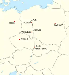 | Coordinates | 49.050°N 17.650°E (begin) 52.683°N 17.067°E (end) |