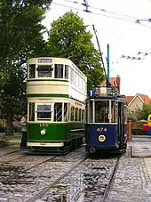 ![]() Preserved former London (first generation) tram and trolleybus at the East Anglia Transport Museum | |