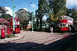 The museum was founded on its present site at Carlton Colville in 1965, following the rescue in 1962 by four enthusiasts of the body of an old Lowestoft tram (number 14),[3] which had been used for a number of years as a summerhouse. The site was formerly a meadow, donated by the founder and first chairman of the Museum Society, Albert Bird. The first buildings on the site were constructed in 1966, but development work on the site took a number of years to complete, and the museum first opened to the public on 28 May 1972.[4] Full tram and trolleybus operations began in 1981, following the construction of a suitable roadway.