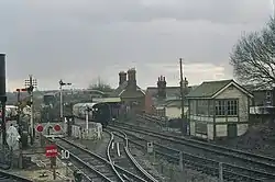 ![]() Chappel and Wakes Colne railway station (far right-hand track) and the East Anglian Railway Museum | |
