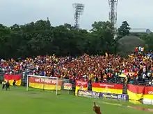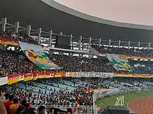 In the 2015–16 I-League, the East Bengal Ultras presented colourful mosaic shows at matches against Bengaluru and Salgaocar in the Barasat Stadium. These were firsts in India's fan culture.[9] At the opening match of the 2016 CFL Premier Division at the Kalyani Stadium, the East Bengal Ultras displayed a 3D tifo, first ever in South Asia, that depicted an East Bengal player holding the CFL Trophy against the backdrop of the Kolkata skyline and the text Kolkata Amader ("Kolkata is ours").[8][10]