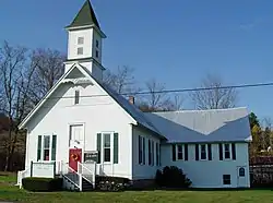 East Berkshire United Methodist Church is a historic United Methodist church located at Berkshire in Tioga County, New York. It was built in 1888 and is a simple, one story frame building with a steep standing seam metal roof and clapboard siding. A small, square based louvered belfry is mounted directly above the gabled facade.[2]