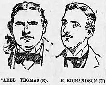 Upon his death in 1890 he was succeeded by Abel Thomas. Within two years, there were criticisms of the new member centred around alleged criticisms of nonconformist ministers and his representing licensed victualers asa barrister. Thomas successfully defended his record and a vote of confidence was passed at the annual meeting of the Liberal Association at Ammanford in June 1892.[6] At the General Election some weeks later, Thomas was unexpectedly opposed by a Liberal Unionist candidate, the Swansea businessman Captain Thomas Davies. It was argued that Davies would gain support from Calvinistic Methodists, who opposed Thomas's links to the liquor trade.[7] However, Thomas won with a large majority.