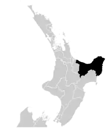 The electorate's main centres are Gisborne (32,529) and Tolaga Bay in the Gisborne Region; and Opotiki and Whakatane (18,800) in the eastern part of the Bay of Plenty Region. Wairoa, the northernmost town in the Hawke's Bay region, was excluded by the 2007 boundary changes.[1][2]