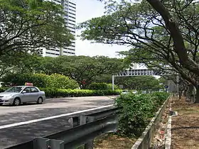 To facilitate the development of the new downtown, the ECP was truncated after the Benjamin Sheares Bridge, with the stretch at Marina South area realigned and converted to a major arterial road called Sheares Avenue.[6] Instead, a new expressway, the Marina Coastal Expressway, was built to connect the ECP and the Kallang–Paya Lebar Expressway to the Ayer Rajah Expressway.[6]
