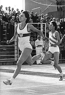 Women competed in the 80 metres hurdles event until 1968, when it was replaced with the new 100 m international standard race. The women's distance races were gradually added, with the 1500 m included in 1967, the 3000 m in 1976, the marathon in 1982, and finally the 10,000 m in 1985.[4][5] The women's pentathlon was later expanded to the standard heptathlon. Steeplechase, pole vault, triple jump, hammer throw and the 50 km walk remained the preserve of men only over the championships' lifetime.[6]