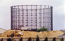 The site had two very large gas holders. The first, built in 1886 and of 8,600,000 cubic feet (240,000 m3) was the world's first 'four lift' (moving section) holder. The second, with six lifts and originally the largest in the world at 12,200,000 cubic feet (350,000 m3), was reduced to 8,900,000 cubic feet (250,000 m3) when it was damaged in the Silvertown explosion in 1917, but was still the largest in England until it was damaged again by a Provisional Irish Republican Army bomb in 1978. It was later demolished. An extensive internal railway system carried coal from a large coaling pier to the rest of the plant.[5]