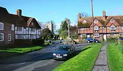 As well as the parish church, East Hagbourne has at least 45 listed buildings. The majority of East Hagbourne's listed buildings are individual houses and cottages, particularly on Main Road and Church Close, which are mid-17th century and are all Grade II listed.[7] The Village Cross or Upper Cross, at the junction of Main Road and Church Close, is a 15th-century stone cross with an 18th-century sundiam, on a base of 5 deep stone steps. It is Grade II* listed.[8]