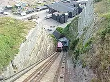The line was opened in August 1902 by Hastings Borough Council. It was originally operated on the water balance principle, and the twin towers of the upper station contained water tanks for this purpose. The line was modernised between 1973 and 1976, during which time it was converted to electric operation and new cars were provided.[2][3]