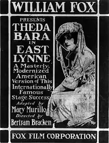 East Lynne is a 1916 American silent drama film directed by Bertram Bracken and starring Theda Bara. Produced by Fox Film Corporation, it is an adaptation of the 1861 novel East Lynne by English author Mrs. Henry Wood.[1] A 16mm print of the film was discovered in 1971 and purchased from Fox by the Museum of Modern Art where it is currently preserved. It is one of the few extant films of Theda Bara.[2]