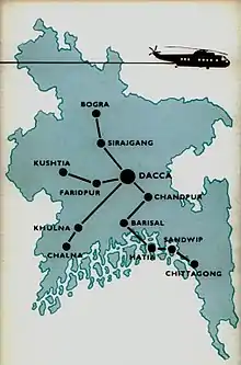 The East Pakistan Helicopter Service refers to the scheduled helicopter services operated by Pakistan International Airlines (PIA) in East Pakistan during the 1960s. It was one of the earliest air services of its kind in the world; and one of the most extensive helicopter networks in history.[1][2]