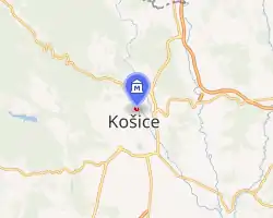 ![]() | Wooden church of St. Nicholas from Kožuchovce [5] | Permanent exhibit | East Carpathian wooden church and wooden belfry, originally from the village of Kožuchovce. | Námestie maratóncov 2 | Transferred to Košice in the 20th century. Located in the park on the grounds of the main building. |