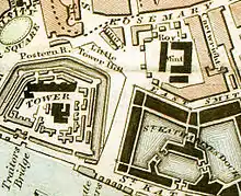 Over time, the area had become divided and further sub-divided. In 1294, the liberty of the Minories was formed around the Minoresses of St. Mary of the Order of St. Clare.[6] Similarly, to the east, was the liberty of Well Close. By the 17th century, the rights, peculiarities and administration of these tiny areas was becoming increasing anachronistic, and in 1686, they were subsumed into the Liberties of the Tower of London.
