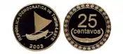25 centavos | 21.25 mm | Nickel-brass | 5.85 g | Traditional fishing boat (beiro), state title, year of emission | ||