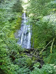 East Twin Falls is located about 15 miles west of Joyce, Washington. The falls are within the Olympic National Forest. The falls are located directly off of East Twin Road which is accessible from State Route 112. The Falls are approximately 40 feet in height.