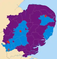 East of England was a constituency of the European Parliament that was coterminous with the East of England region. It returned 7 MEPs using the D'Hondt method of party-list proportional representation, until the UK exit from the European Union on 31 January 2020.