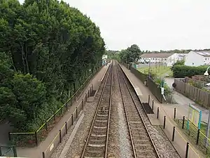 Eastbrook railway station is a railway station serving the Eastbrook area of Dinas Powys, a village near Cardiff, South Wales. It is located on Network Rail's Barry Branch 3+1⁄2 miles (5.6 km) south of Cardiff Central towards Barry Island and Bridgend (via Barry and Rhoose).