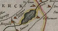 This 1605 map shows the ancient Burgumer Mar to the northwest of the village, but not yet De Leien, the lake to the south that came into being during the large-scale peat extraction that took place between 1500 and 1750.