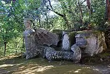 According to some, Arima was instead located in a volcanic plain on the upper Gediz River called the Catacecaumene ("Burnt Land"), situated between the ancient kingdoms of Lydia, Mysia and Phrygia, near Mount Tmolus (modern Bozdağ) and Sardis, the ancient capital of Lydia.[49] According to Strabo, some placed the Arimoi and the battle between Typhon and Zeus at Catacecaumene,[50] while Xanthus of Lydia added that "a certain Arimus" ruled there.[51] Strabo also tells us that, according to "some", Homer's "couch of Typhon" (and hence the Arimoi) was located "in a wooded place, in the fertile land of Hyde", with Hyde being another name for Sardis (or its acropolis), and that Demetrius of Scepsis thought that the Arimoi were most plausibly located "in the Catacecaumene country in Mysia".[52] The third-century BC poet Lycophron placed Echidna's lair in this region.[53]